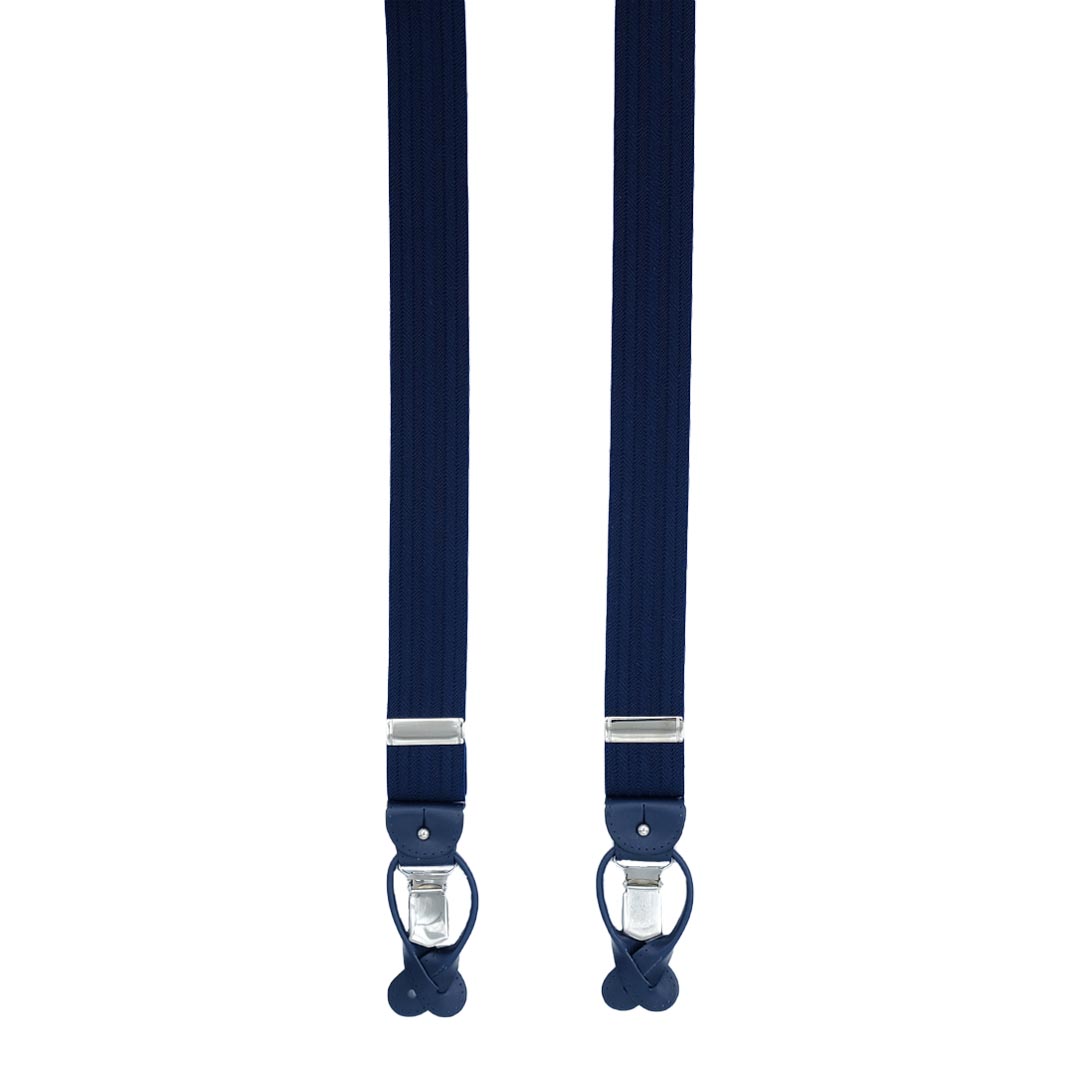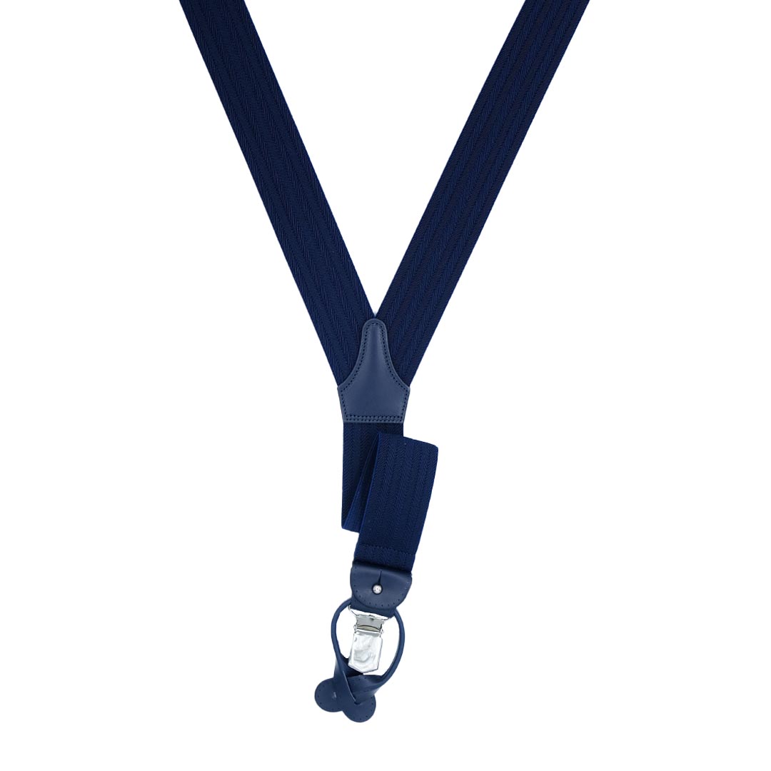 Bretelle blu spigatino con fasce larghe. Queste bretelle offrono un mix perfetto di durata, comfort ed eleganza. Regolabili per una vestibilità su misura. La nostra scatola dal design elegante è perfetta anche come idea regalo.
